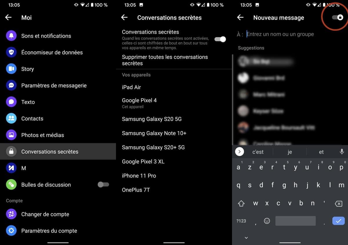 Messenger propose le chiffrement de bout en bout grâce au protocole Signal. Pour une conversation confidentielle, ouvrez un chat classique, puis passez en mode secret via l’icône cadenas. Il est aussi possible de démarrer un « appel secret » depuis le profil et de choisir le bon appareil pour cet échange chiffré.
