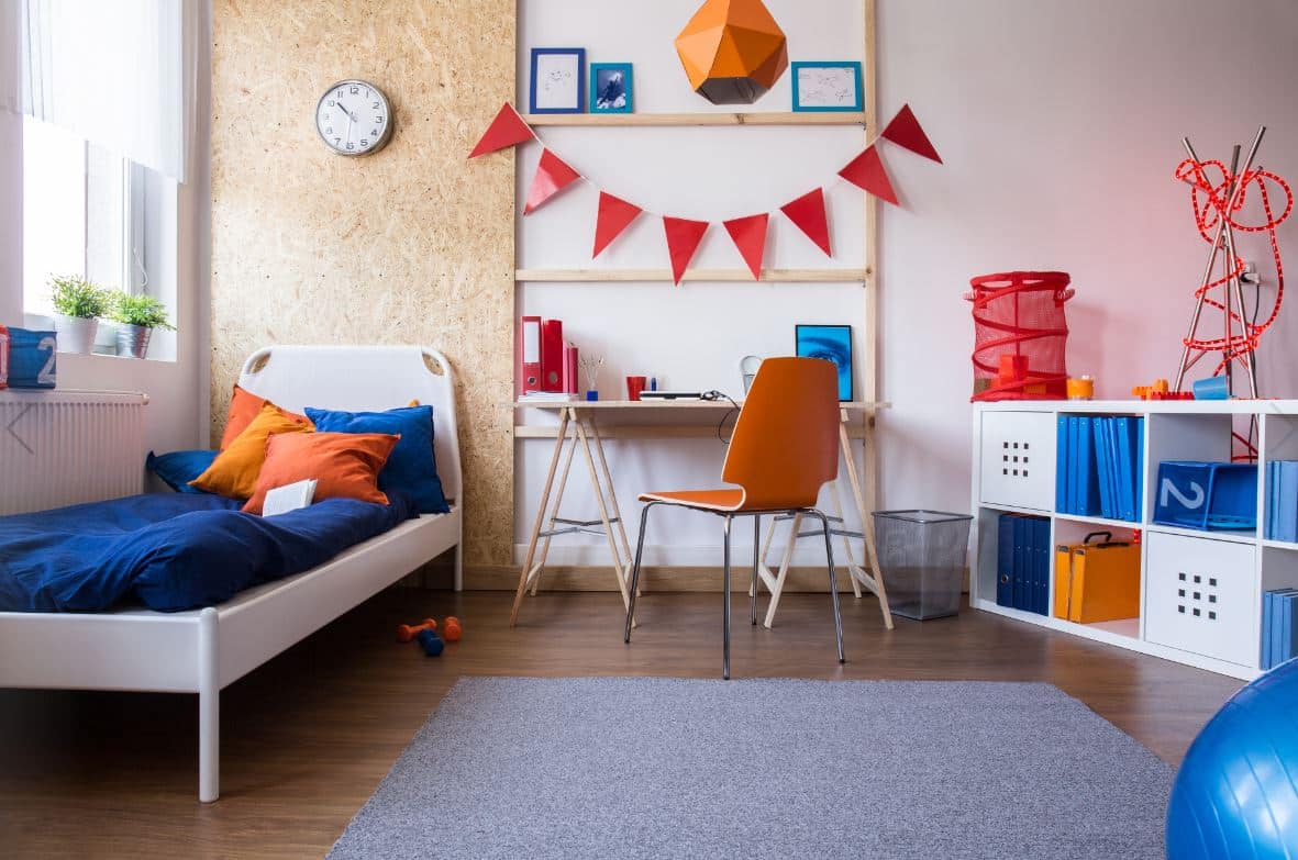 Dans l’univers d’un adolescent, le bleu Klein tempère les couleurs vitaminées, comme le rouge ou l’orange, pour un équilibre parfait entre énergie et sérénité.