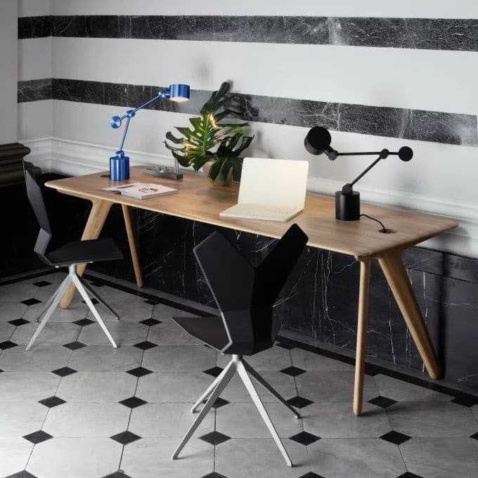 - Une lampe de bureau, posée sur un coin de table, distille une lumière unique pour travailler ou rêver