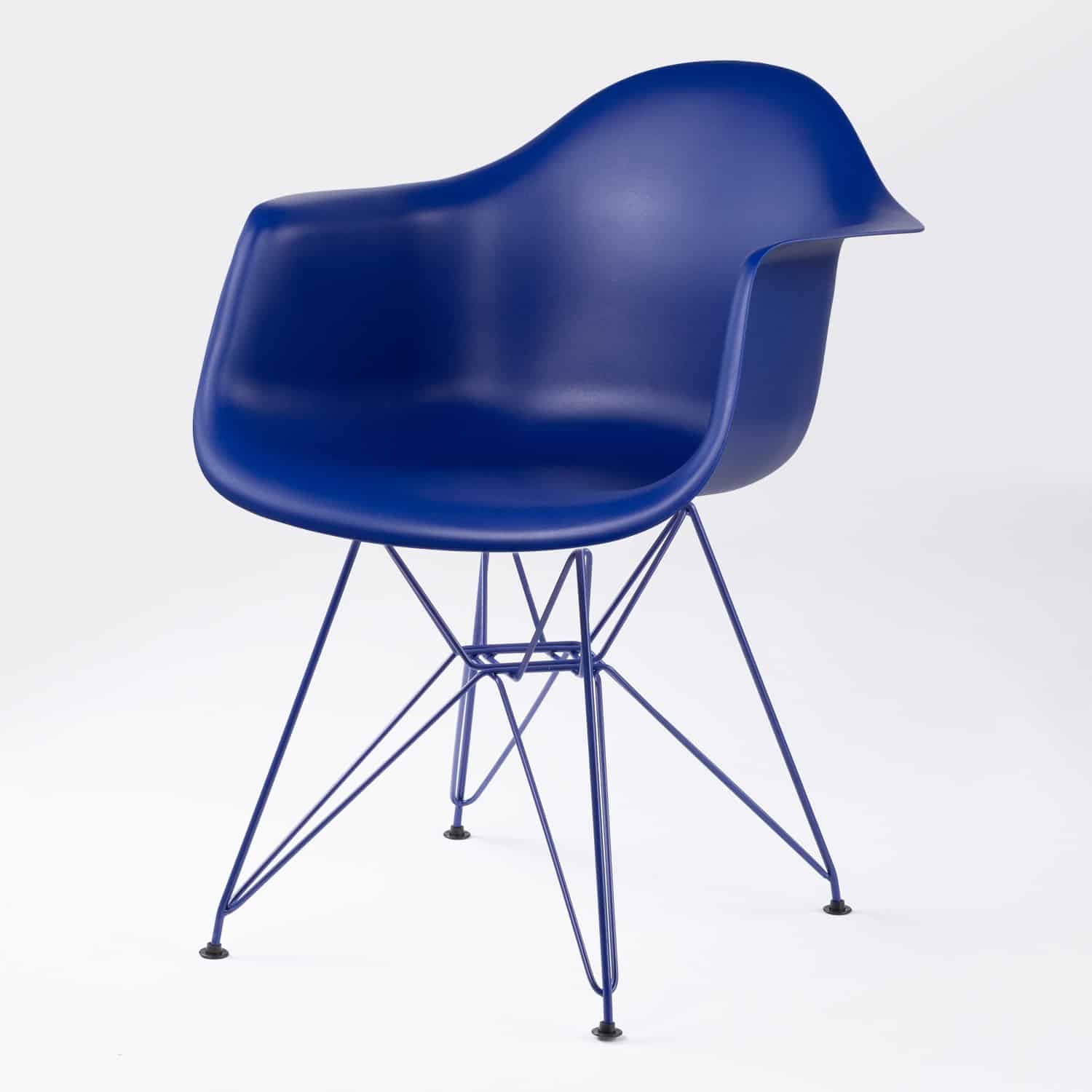 Une commode bleu Klein, placée dans un salon à l’esprit loft, tranche immédiatement avec le béton, le métal et le cuir. La chaise de bureau, elle, s’accorde aussi bien avec des bois clairs qu’avec des essences plus sombres et impose son style sans fausse note.