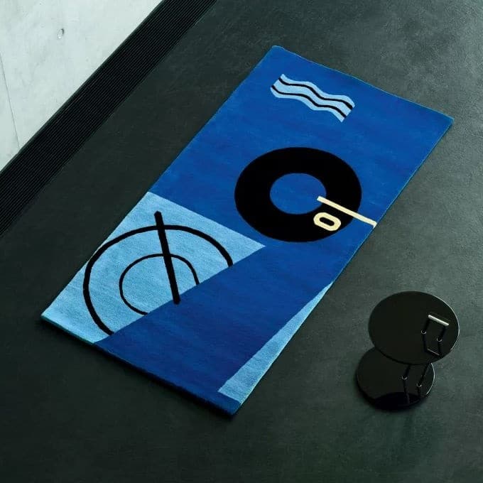 Un salon trop discret ? Le tapis bleu Klein fait toute la différence, bousculant la routine visuelle en un clin d’œil.